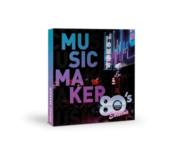 La edición incluye 3 Soundpools diferentes de los años 80, un instrumento virtual de su elección y acceso a todos los sonidos, funciones e instrumentos gratuitos de Music Maker.